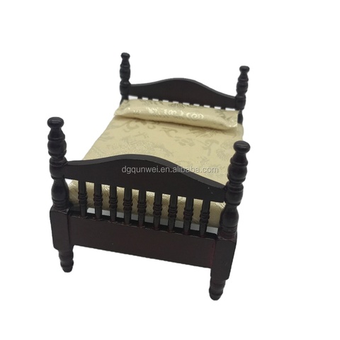 112 Doll House camas Wooden miniatura Furniture Mini cama para Doll acessórios decorar micro cena cama