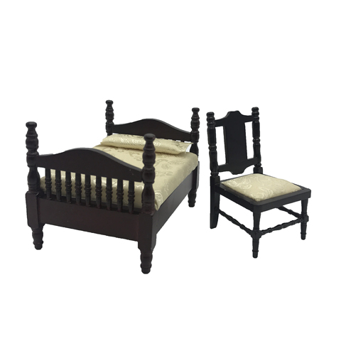 Vintage mobiliário miniatura boneca casa cama madeira mini cadeira 1:12