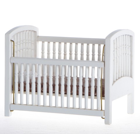 1:12 Móveis Dollhouse Miniature Branco Berço Do Bebê, balançando a cama, cama de bebê QW60061